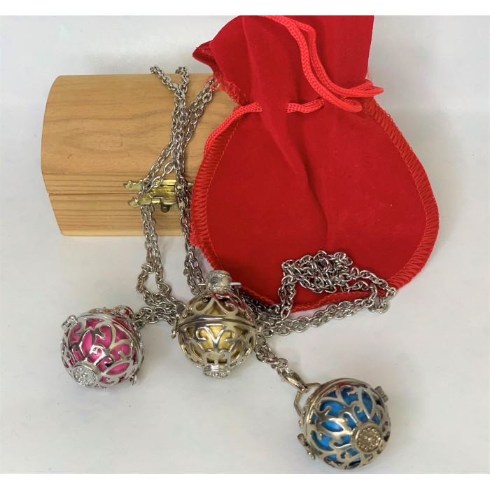 Um chamador de Anjos consiste numa esfera de metal, que geralmente é trabalhada, e dentro da qual se encontra uma espécie de guizo que emite um som suave, através do qual os Anjos ouvem os nossos pedidos. Alguns Chamadores de Anjos têm pequenas pedras e cristais incrustados, os quais aumentam ainda mais o seu poder protetor.